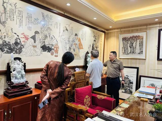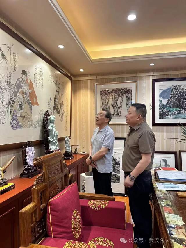 武汉名人协会会长郭建,名家典藏艺术馆负责人熊凤青等热情接待周宜开先生一行,并陪同参观调研。