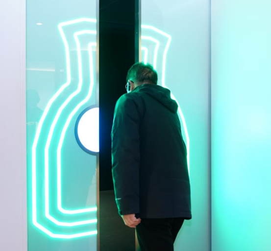进入劲牌展馆的方式十分新颖独特,协会文化艺术顾问、省曲艺家协会主席陆鸣先生亲手触摸感应科技之门,大家进入内部参观。讲解人员借助定向传导技术,3D悬浮式飞行剧院等现代化展示手段,系统展示了企业从创立之初到成为行业标杆的发展脉络,重点介绍了在酿造工艺传承与革新方面的探索。