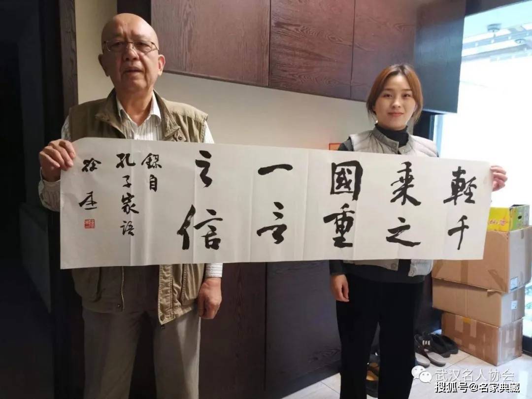 2020年10月5日下午,武汉名人协会组联部主任熊凤青等一行,看望著名书法家、湖北省书协主席徐本一。徐本一老师受邀为名家典藏馆题写墨宝“轻千乘之国,重一言之信”。