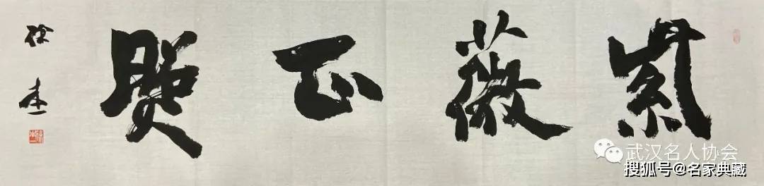 徐本一先生的书法风格当属阳刚之美一类,但并不排斥南帖秀韵天成的一面,如以精到见长的小字行书,写来极富书卷气息,有东坡所谓的“学问文章之气”溢于楮墨者也;先生的榜书,在沉雄老健之外,更多一分浑朴郁勃之象。透过先生的行书,可以窥见其楷书用笔的功底,逆入平出,轻重徐疾,起承转合,可谓中规入矩,离方遁圆。在行、草书中又可领略到用笔的灵活多变,中侧交互,转折随心,纵敛裕如。近年,先生的书风由早期的英气勃发,正向沉雄老健迈进,在中国书法中,有“人书俱老”之谓,先生之“老”,是姜白石所谓的“浓纤间出,血脉相连,筋骨老健,风神洒落”。