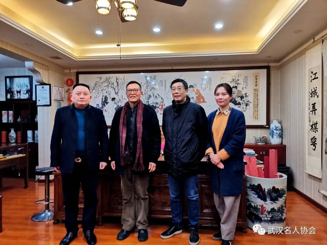 2020年12月15日下午,武汉市委宣传部原副部长、市文联党组书记常务副主席陈元生,武汉出版集团董事长、党组书记、武汉出版社社长朱向梅,武汉炎黄文化研究会会长戴新民等嘉宾受邀到武汉名人协会、名家典藏艺术馆参观考察指导工作。武汉名人协会会长、名家典藏艺术机构董事长郭建,武汉名人协会副秘书长、武汉天德瑞建材有限公司总经理陆志明等协会企业负责同志陪同参加。